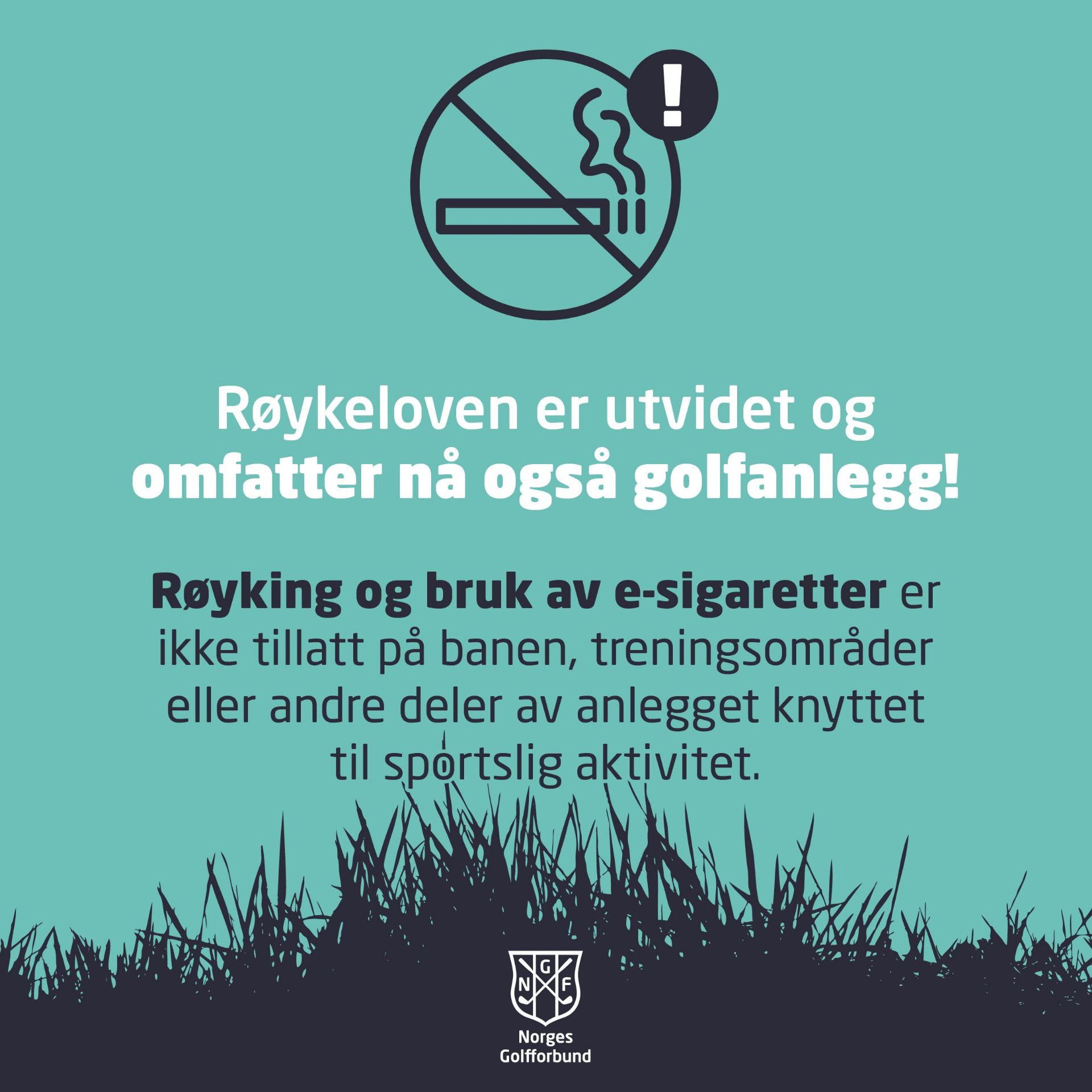 For oss betyr dette at vi minner alle medlemmer, gjester og besøkende om at det er røykeforbud på hele golfanlegget.