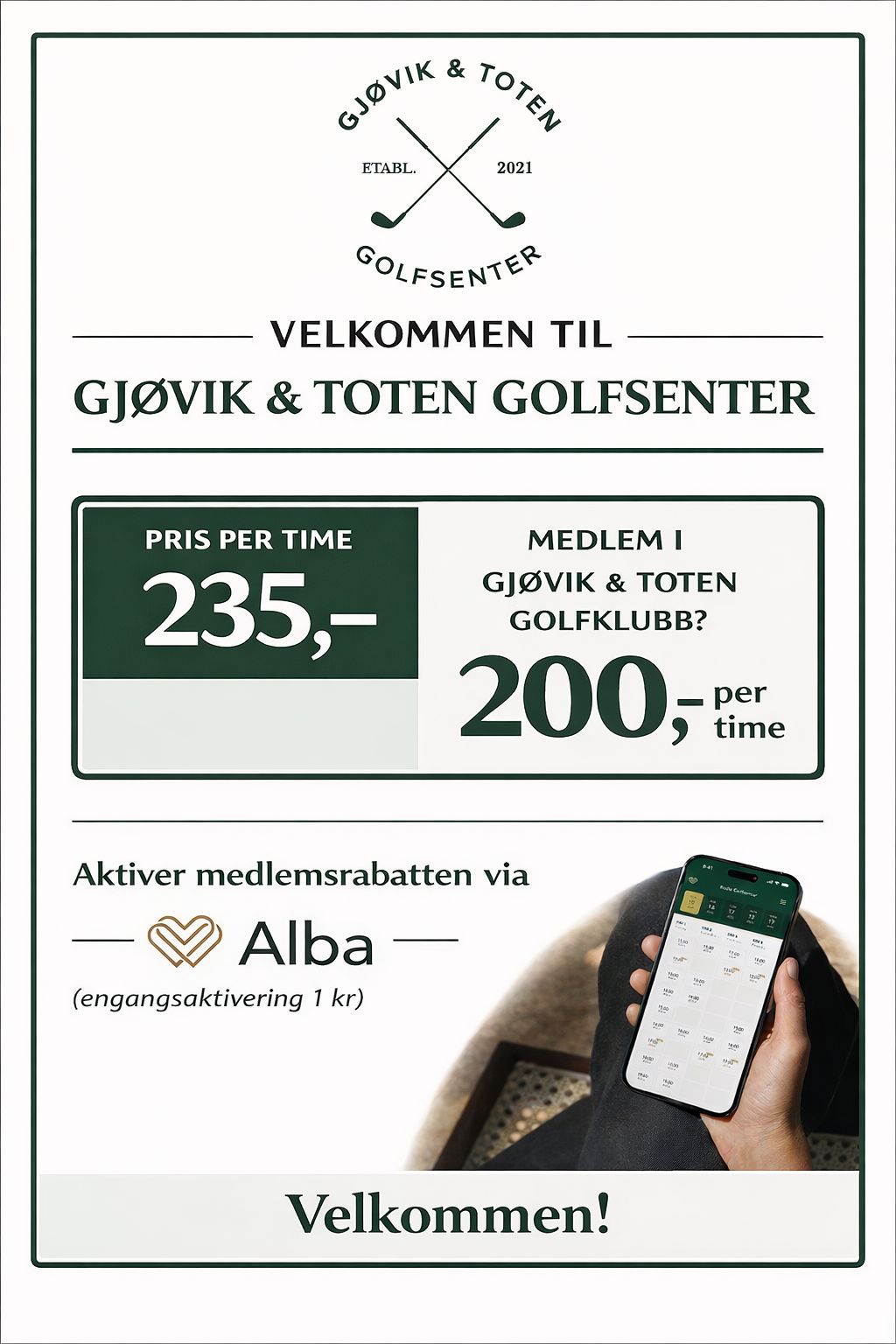 Golfsenteret er ubemannet, og all booking og betaling gjøres enkelt via ALBA.
